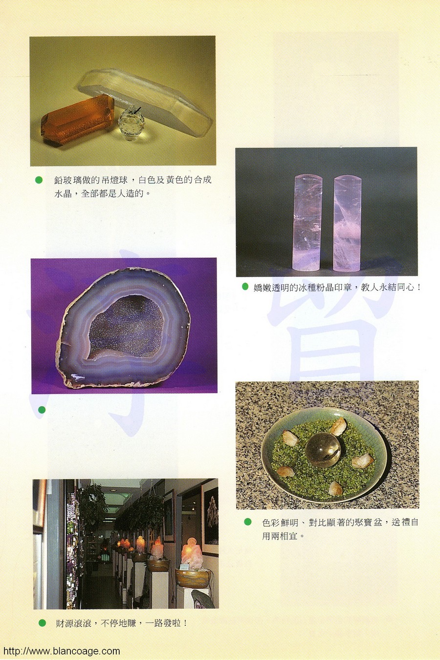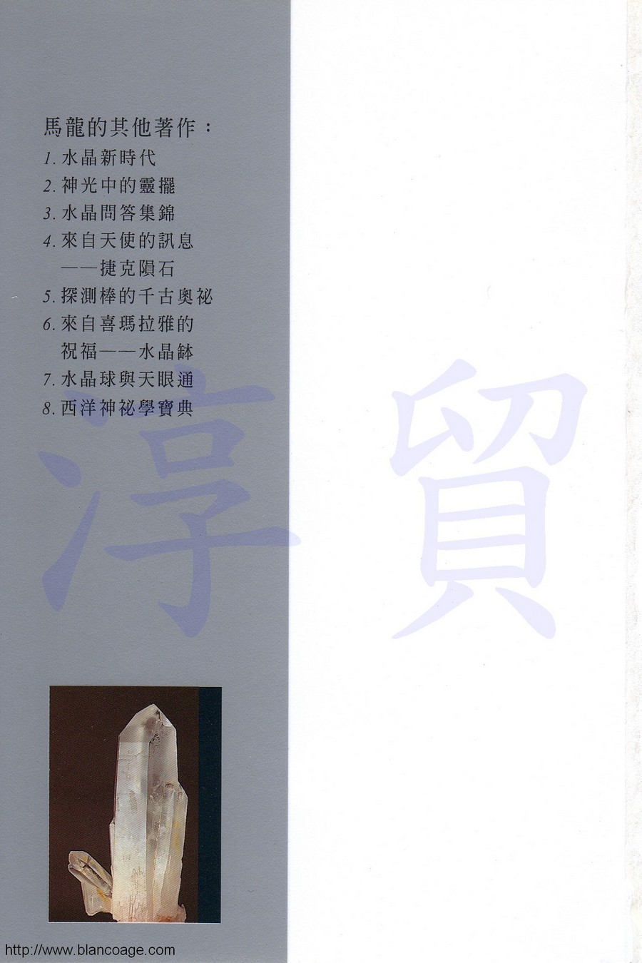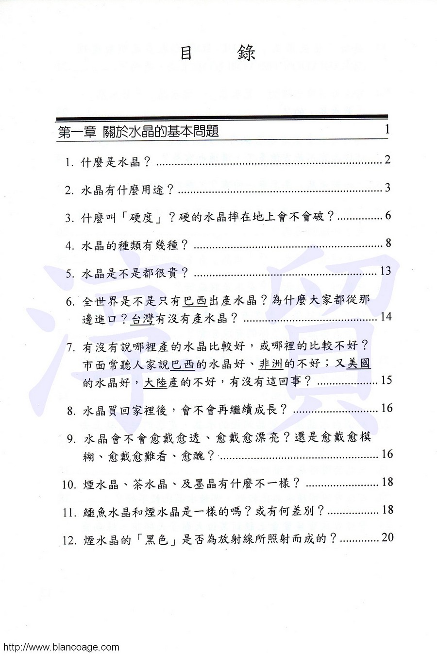本書共搜羅了二百多個晌玩水晶礦石時所常遇到的問題,並予以專業、詳盡、技巧、又幽默的解說,帶有馬龍的一貫的風格,笑談之間,釐清了所有艱澀深奧的難題。全書涵蓋五大層面,全文超過十萬字,不僅是業餘玩家們必讀手冊,更是從事水晶行業專業人士們的教戰手則!