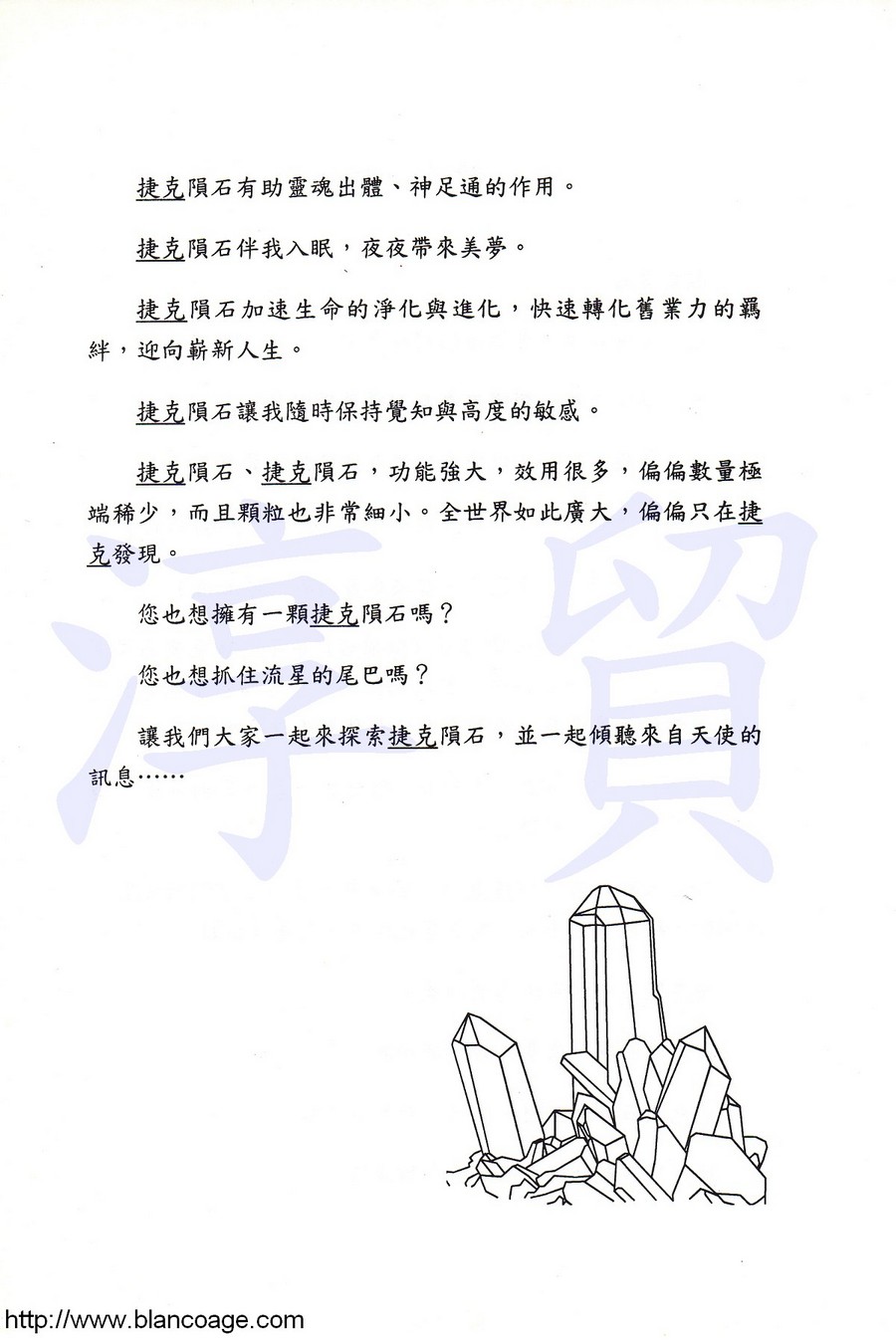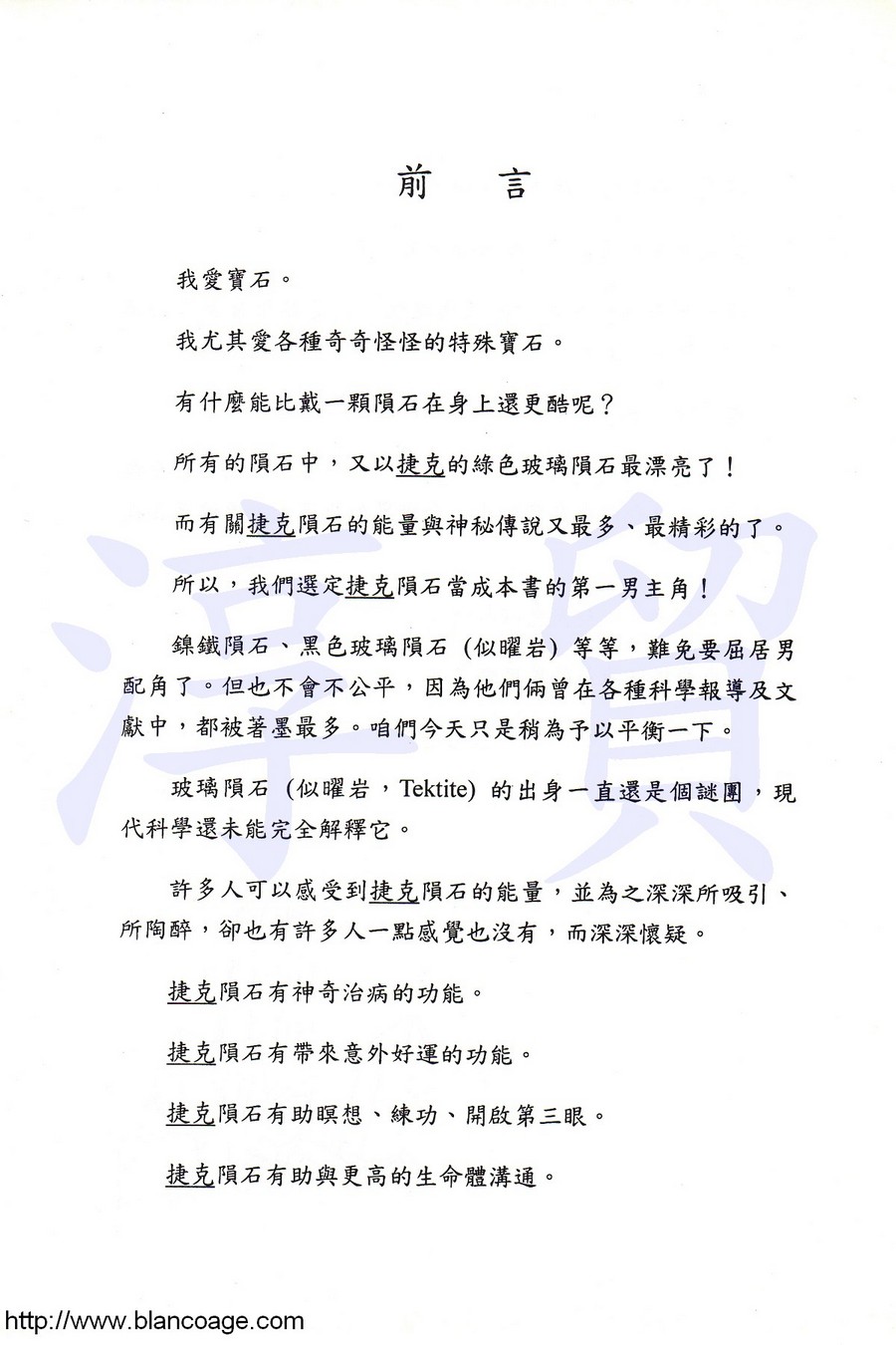 帶有神秘又強大能量的綠色捷克玻璃隕石,其來源出處一直是科學界未解的謎,其功用又為各方神秘學家所萬分推崇,許多人也從隕石中得到良好的感應。在二十世紀末,才開始在台灣流行開來的捷克隕石,一般資料卻極為少見。本書參酌了近百年來,所有天文學家、地質學家、歷史學家、神秘學家對這項神秘隕石的研究與報告,還有多種親身使用的經驗與實例,據專業性、豐富性、實用性與可看性!這是一本介紹捷克隕石最詳盡的書。