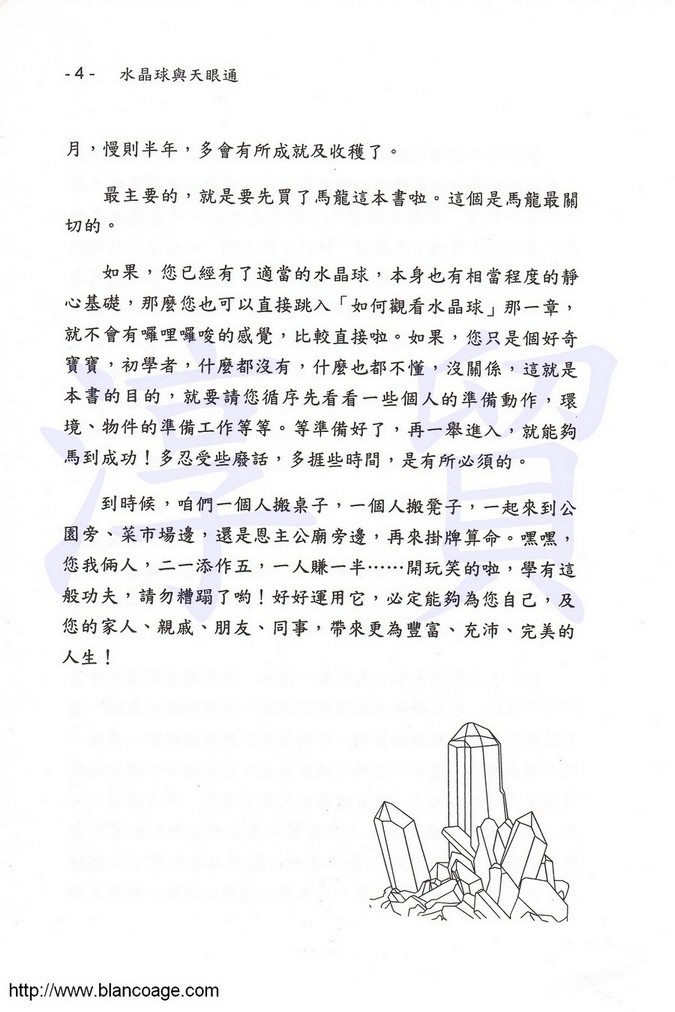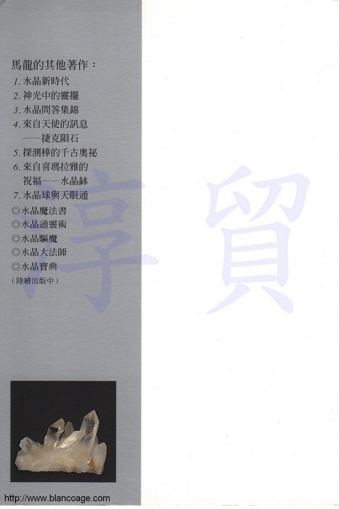 觀看水晶球(Crystal Gazing)是一種非常高級的心靈活動,能夠穿透時間、空間的障礙,直接觀看到過去、現在、未來、天界、陽界、幽冥界的所有人、事、物。千百年來一直是西洋魔法(Magics)中的要角,但是卻鮮為外人所知。本書突破禁忌,直說神通,直觀水晶球,詳細道盡所有的方法與關鍵技巧,是一本可以帶你進入未知世界的領航圖。如何利用水晶球來達到天眼通,秘密就盡在此書中!