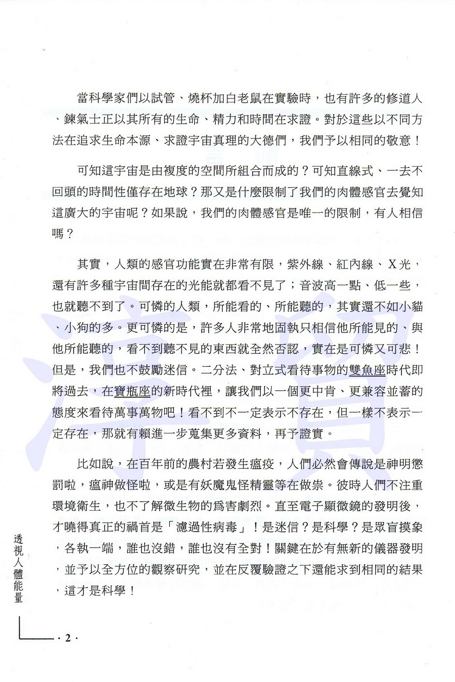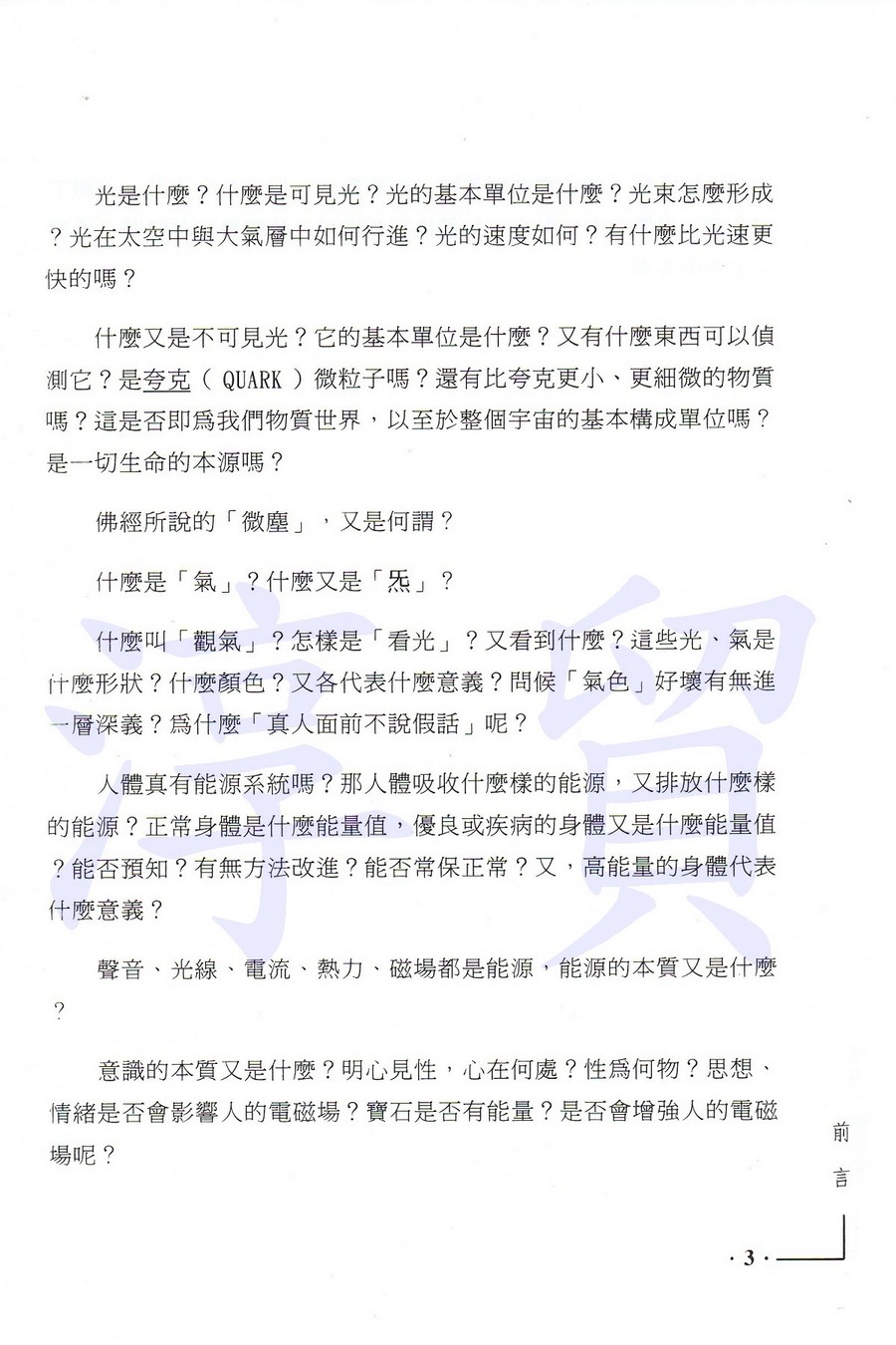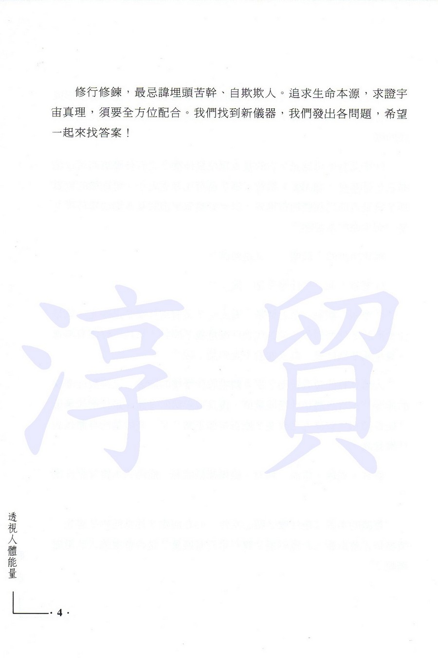 | 這是本專門討論人體氣場的書,也是自人類有史以來的第一本,大規模地、密集性地、以儀器來拍攝人體電磁能源場,收錄有150餘張氣場相片,並由其中歸納出其科學性、邏輯性、條理性。藉由作者詼諧幽默的筆調,讀者可輕鬆自然地了解到能量的本質,氣場的成因、變因,也從而推論出修持的真實意義,與神通者、特益功能者的憑藉處,並和所有最高證誤者對生命、宇宙所開示的真理相互印證。 新科技打破玄說怪談,新知識沖散懷疑無知,正信取代迷信。隨著新時代的來臨,所有宗教、玄學、詭論的神秘面紗,均將被揭開。你準備好進入新時代了嗎?就從打開此本書開始吧!
